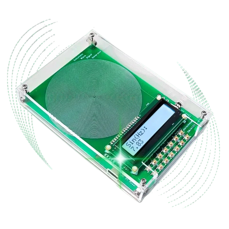 Das Gerät funktioniert, indem es spezifische Frequenzen erzeugt, entweder über gepulste elektromagnetische Felder (PEMF) oder über Ton (wenn es mit einem Lautsprecher oder Kopfhörer verbunden ist).
