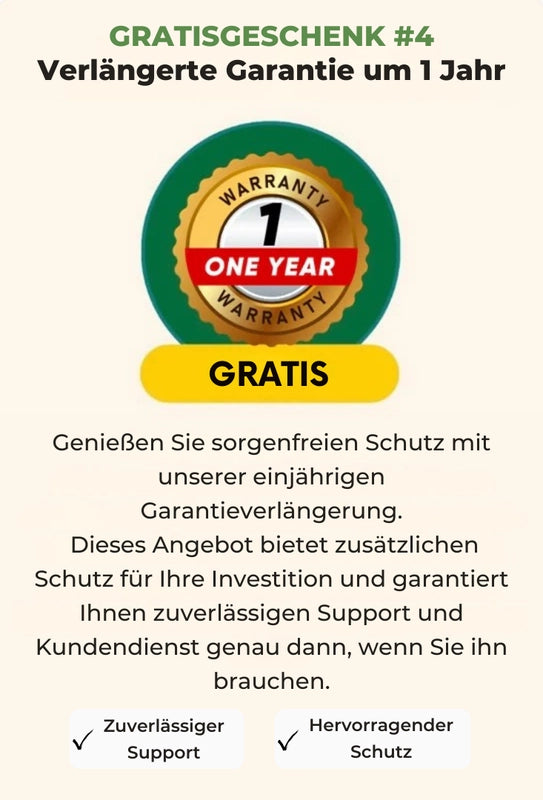 - 1 Jahr Garantieverlängerung (Wert: 5 €)